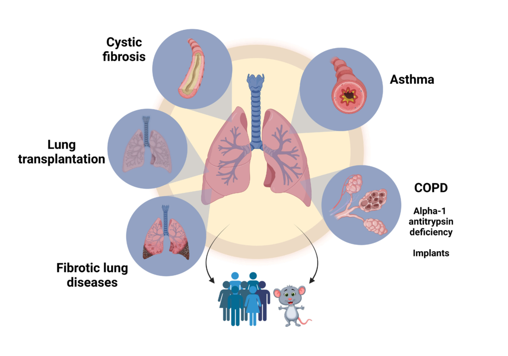 Our research team focuses on understanding the intricate and dynamic interactions between genetic, molecular, and immunological mechanismsunderlying chronic respiratory diseases such as asthma, COPD, cystic fibrosis, and fibrotic lung diseases. The group is also interested in discovering risk factors that contribute to organ rejection after lung transplantation and foreign body reaction to airway implants. The crosstalk between epithelial cells and the immune system, including T cells, monocytes, and macrophages, is being investigated to uncover novel disease-related mechanisms.
